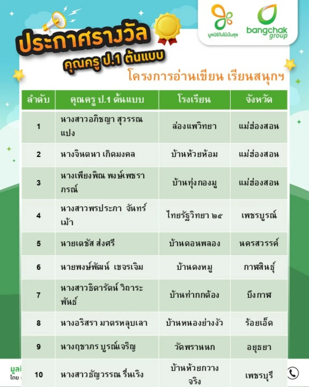มูลนิธิใบไม้ปันสุขขอแสดงความยินดีกับ คุณครูทั้ง 10 ท่าน